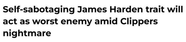 话虽如此,快船如今正深陷一场让哈登沦为焦点的噩梦。他的打法为他赢得了数亿美元的财富,但在当前这种特殊处境下,恰恰是这一原因,让他的第17个NBA赛季很可能付诸东流。