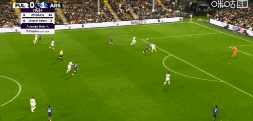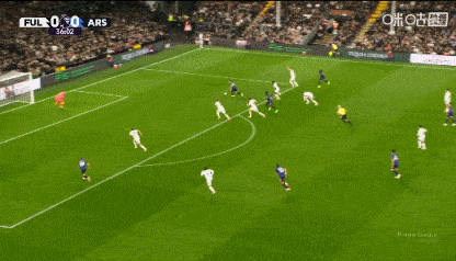 第58分钟,阿森纳角球机会,萨卡主罚,加布里埃尔头球摆渡,特罗萨德抢点破门,阿森纳1-0领先富勒姆。